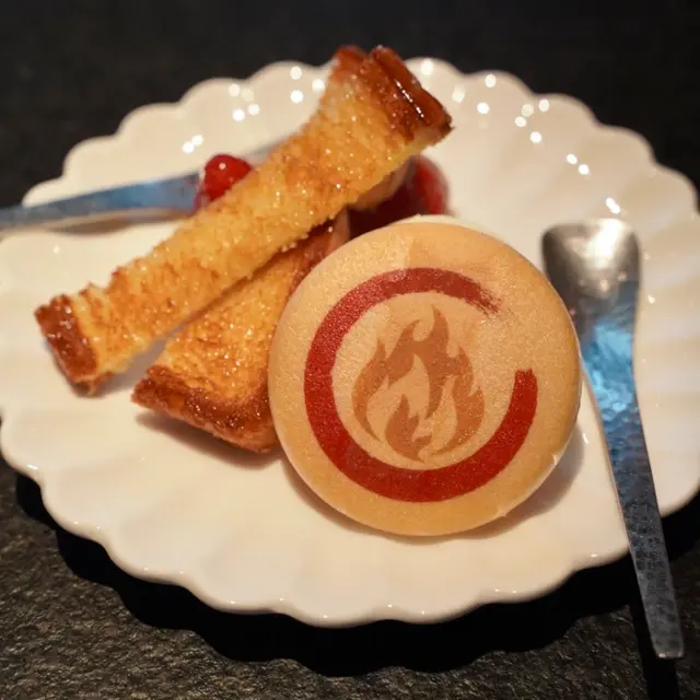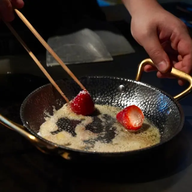 甜品係焦糖多士配雲呢拿雪糕及最中餅,師傅即場烹製草莓雪芭及新鮮草莓,非常可口