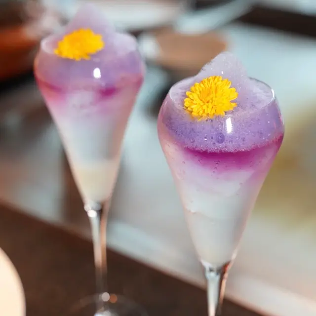 龍蝦新鮮生猛,口感爽彈~蘸上龍蝦膏醬汁及櫻花蝦蝶豆花泡沫食,味道好香濃😍 配搭以鹹柑桔及gin 酒調配蝶豆花泡沫cocktail ,酸甜清爽,可減低濃郁味道帶來既油膩感