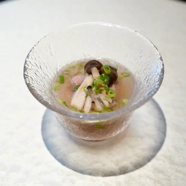 鰹魚清湯及茉莉花茶製成湯底,加埋即場烹煮和牛,用作間場清一清味蕾