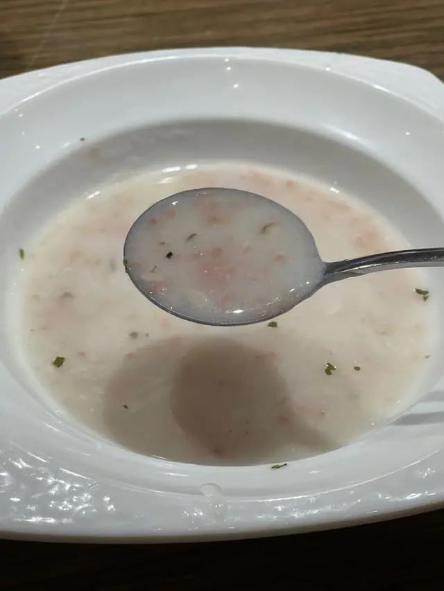 嗌之前可以問吓係乜嘢湯,呢款忌廉煙肉湯好足料,裏面粒粒碎嘅煙肉令到個湯有鹹香,本身嘅忌廉亦都好滑同埋香濃,大大碗,物有所值!!