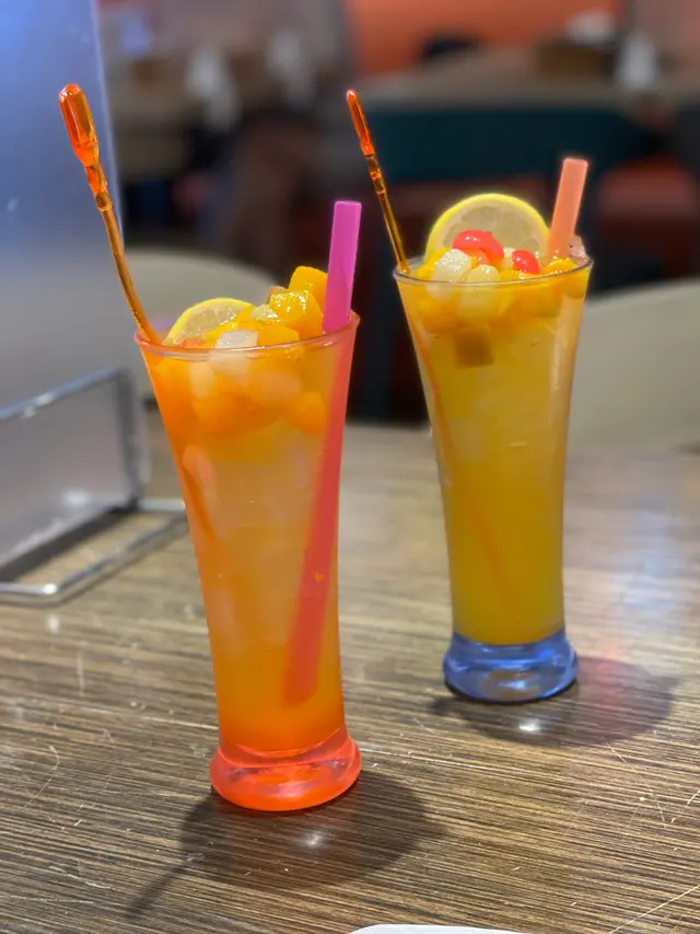 係有水果味嘅梳打,上面仲好似雜果賓治咁有唔同嘅水果,賣相好靚,我哋仲叫咗少甜,清新啲,凍冰冰適合夏日飲用。