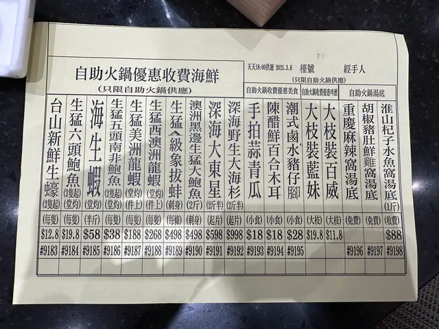 有鵝腸、丸類、麵類、菜類,基本款式應有盡有。還有剔剔紙可以選擇肉類、海鮮等等,一定夠飽肚。