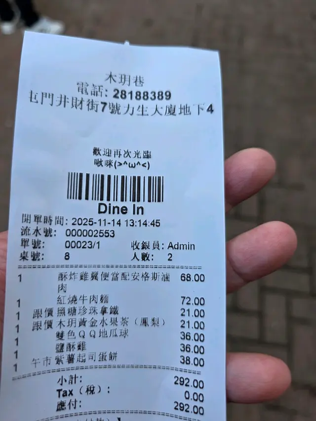 隱世台灣菜 ballb06等級42025-11-1890 瀏覽 關注 呢間餐廳環境好chill全日堂食外賣自取都係88折,唔洗坐飛機去台灣都食到好味既台灣菜,一個好平既價錢就食到,餐廳入面感覺好家庭feel落地開揚大玻璃望到街景好chill,適合同朋友黎食飯傾計。木玥招牌紅燒牛肉麵:入面份量大碗,牛肉厚實又軟淋,湯底牛肉味濃郁,麵條係台灣幼麵配埋大塊蘿蔔配菜。小食推介鹽酥雞,炸到細細粒外脆口感沾上特制醬汁令人一啖接一啖想食多幾粒。雙色地瓜球:份量多,脆卜卜口感。酥炸雞翼配安格斯滷肉飯:飯既份量大碗,炸雞翼即炸香脆,滷肉比較特別自家制。木玥招牌水果茶:水果味FRESH,清新口感減低油膩感,菠蘿水果茶大大杯跟餐只需半價,珍珠鮮奶LATTE濃郁鮮奶味。4以上食評乃用戶個人意見 , 並不代表OpenRice之觀點。讚好分享隱世台灣菜 木玥巷 https://s.openrice.com/QrbT0q41V00檢舉 張貼 評分5味道5環境5服務4衛生5抵食用餐途徑堂食