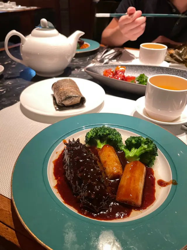 京蔥燒原條遼參好有睇頭、遼參的鮮味與蔥香交織,夠爽滑好好味!