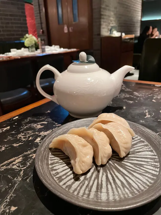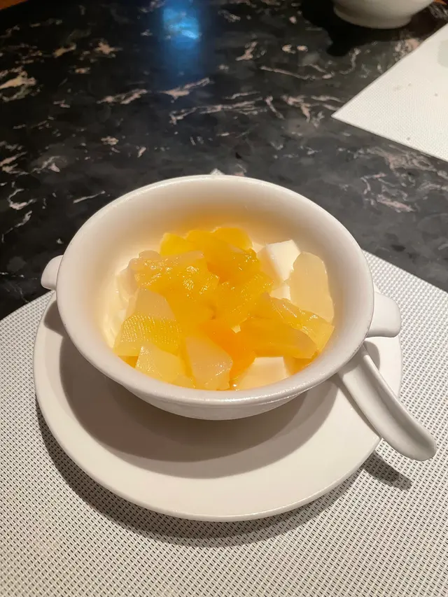 最後的三鮮煎鍋貼和老上海凍杏仁雜果豆腐,為這晚完美作結