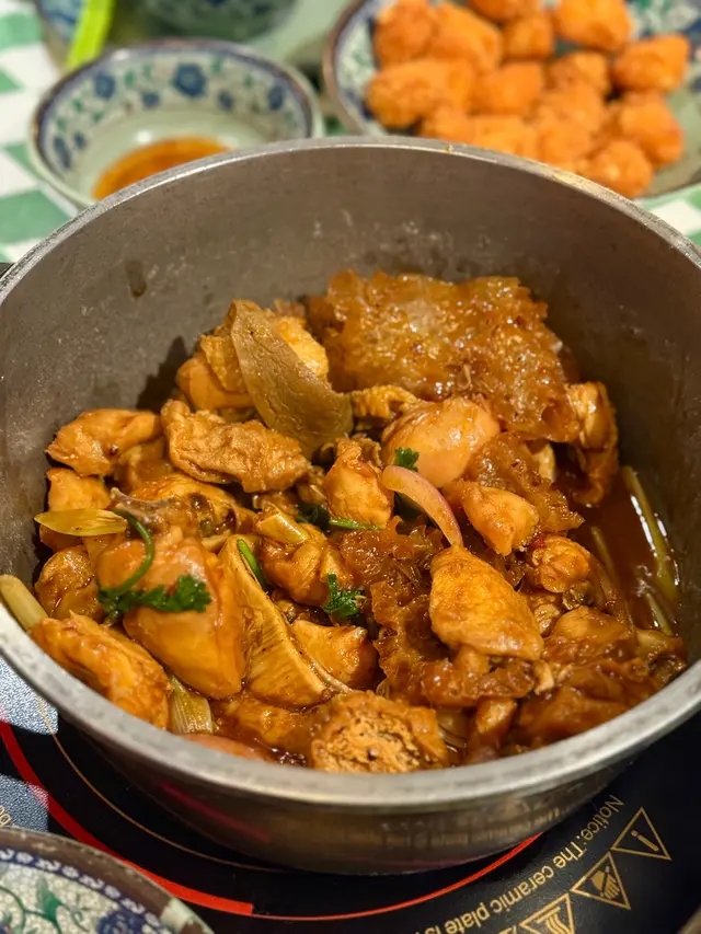 先來一個雞煲,用料好豐富,有嫩滑雞肉、爽口豬腸、豬肚、豬皮,還有豆卜,而且煮得好入味,味道香濃微辣,十分惹味。