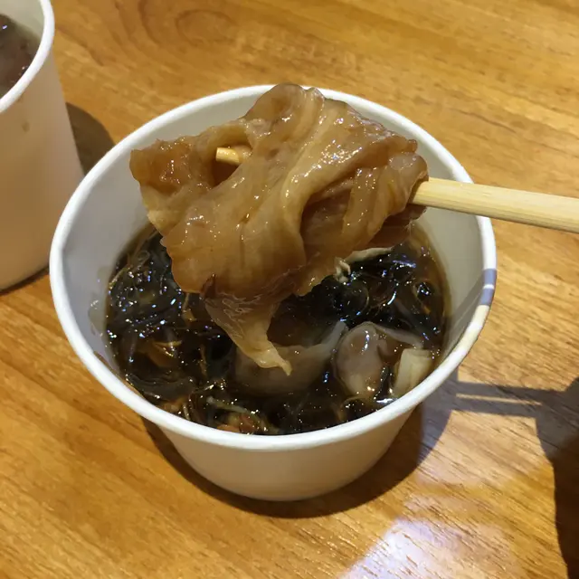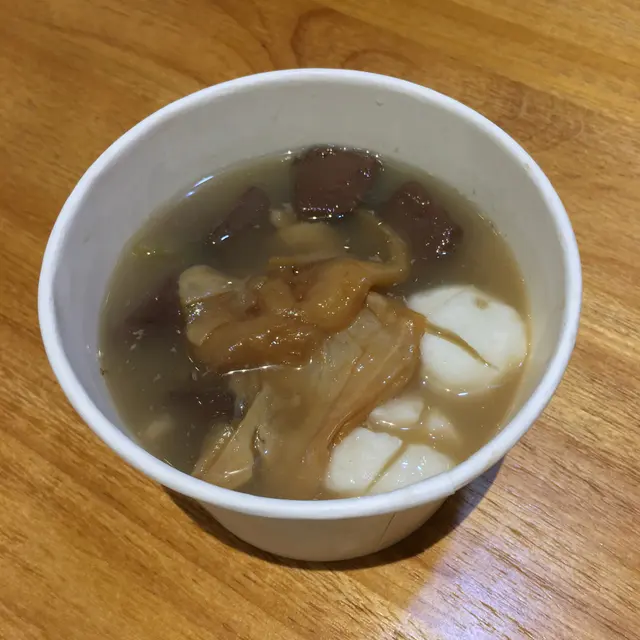 湯裏面真係有薏米、冬瓜蓉同鯊魚骨,真材實料,味道鮮甜,無添加味精,食完車仔麵仲可以飲埋碗湯,一舉兩得!配料方面,揀左鮑汁花膠、墨魚丸、豬紅。花膠嘅骨膠原感覺好豐富,腍滑有彈性,滋潤養顏。墨魚丸爽口彈牙👍🏻豬紅就鮮甜唔腥