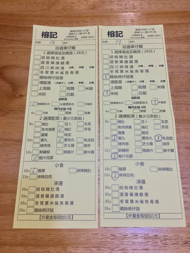 菜單上以多款特色湯底車仔麵為主,也有咖喱飯食