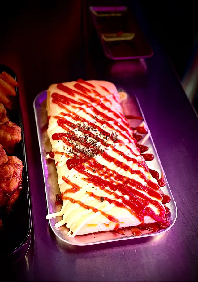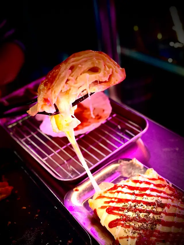 另一道我哋點咗嘅菜式係芝士蛋卷。芝士蛋卷嘅樣貌好吸引,上面撒滿咗絲絲芝士,好誘人。一口咬落去,蛋卷嘅軟滑口感同芝士嘅濃郁滋味完美結合埋一齊,絕對係芝士愛好者嘅首選。