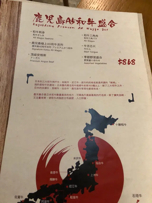 食完前菜 見到佢有個鹿兒島A5和牛盛合有和牛刺身 好似好正啊🤤🤤 不過要八百幾蚊👆 我地今晚都係食頂級安格斯牛吉列御膳先啦😛😛