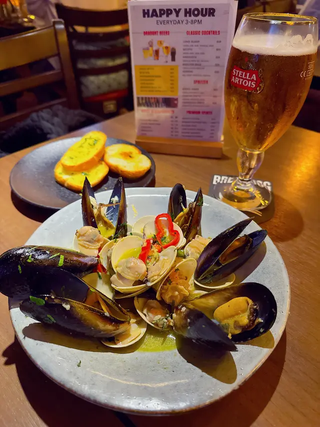 食在上環🎶 上環free Jam🎤酒吧餐廳 TommyWong4080等級42024-05-23719 瀏覽 關注 很久沒去上環🤭今日過開黎做完野就約朋友食飯順便黎KonFusion Restaurant and Bar食飯聽下歌放鬆下🤗餐廳每晚都有Free Jam環節🎶 黎食飯既朋友可以大展歌喉🎤Jam下歌咁🤩氣氛唔錯‼️食物主要係佐酒小食🍟意粉🍝及幾款主菜☺️青口大蜆用左辣椒🌶️蒜及白酒煮成🤗配檸檬黃油醬大蒜麵包🥖意式卡邦醬筆管麵配香脆煙肉、蛋黃、巴馬臣芝士🧀味道香濃🤤炸甜蕃薯條🍠即點即炸配沙律醬🤗夠哂香口送酒一流‼️Happy Hour時段以優惠價可以點多款Draft 🍺 🍷 cocktails🍸 SPRITZER 及Premium sprities🥃我就點左杯Stella啤一啤😎1以上食評乃用戶個人意見 , 並不代表OpenRice之觀點。讚好分享食在上環🎶 上環free Jam🎤酒吧餐廳 KonFusion Restaurant and Bar https://s.openrice.com/QrbT0YOyfW0檢舉 張貼 評分5味道4環境4服務5衛生4抵食用餐途徑堂食