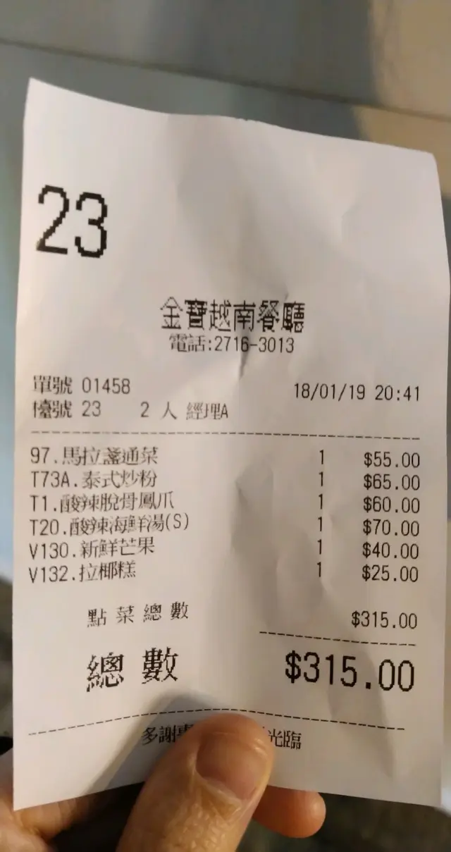 兩個人叫咗個細酸辣海鮮湯,泰式金邊粉,馬拉盞通菜,無骨鳳爪沙律,新鮮芒果甜品同拉椰糕甜品 (其實最後都係叫晒全部泰菜🙈)