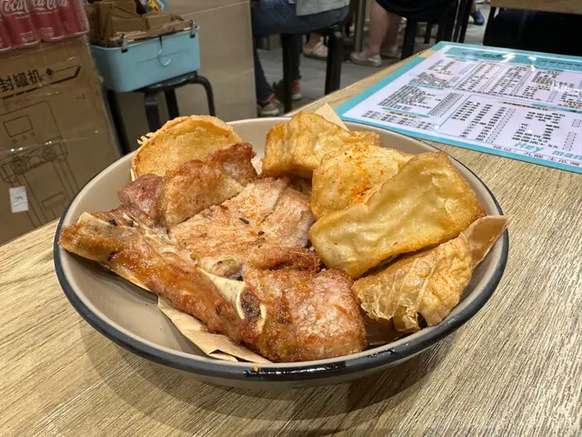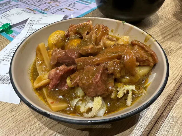 第二碗麵,我選了豬紅,咖哩魷魚,韭菜,蘿蔔,豬皮。這碗麵的亮點是咖哩魷魚,咖哩汁濃稠香辣,魷魚切得厚實而不柴,入口即化。豬紅和豬皮也很入味和爽口,蘿蔔和韭菜則增加了清爽度和綠色元素。