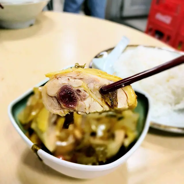 朋友點左口水雞飯,呢度係酸辣口味,上面有一堆酸菜,下面就有辣椒油,雞件都幾嫩滑,酸酸辣辣好餸飯。