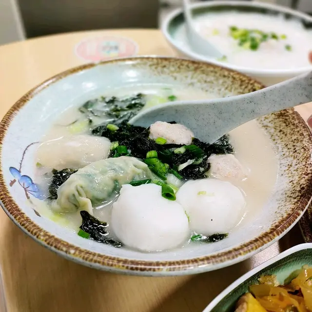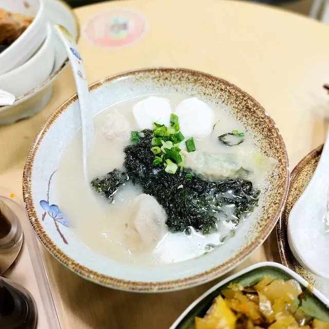 仲有紫菜四寶湯,四寶有魚蛋、魚皮餃、韭菜餃同豬肉丸,湯底有紫菜香,都唔錯呀。