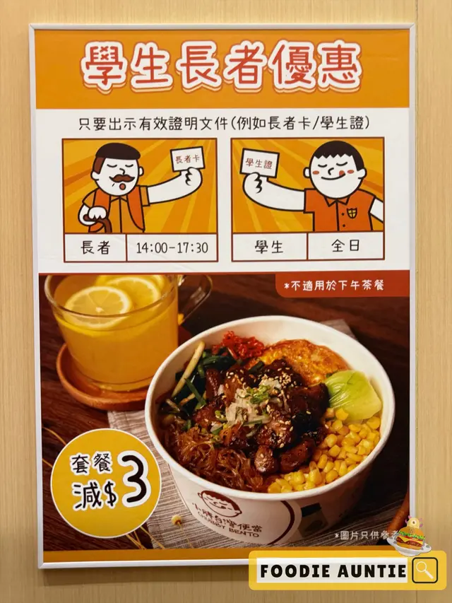 🍱 首先叫左餐牌上推介嘅「台式鐵路大排骨滷肉便當」,手掌咁大嘅排骨滷到腍滑入味,滷肉汁滲透落珍珠米,仲有半隻滷蛋同酸菜撐場,十足十重現台鐵懷舊風味~