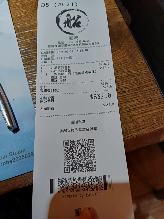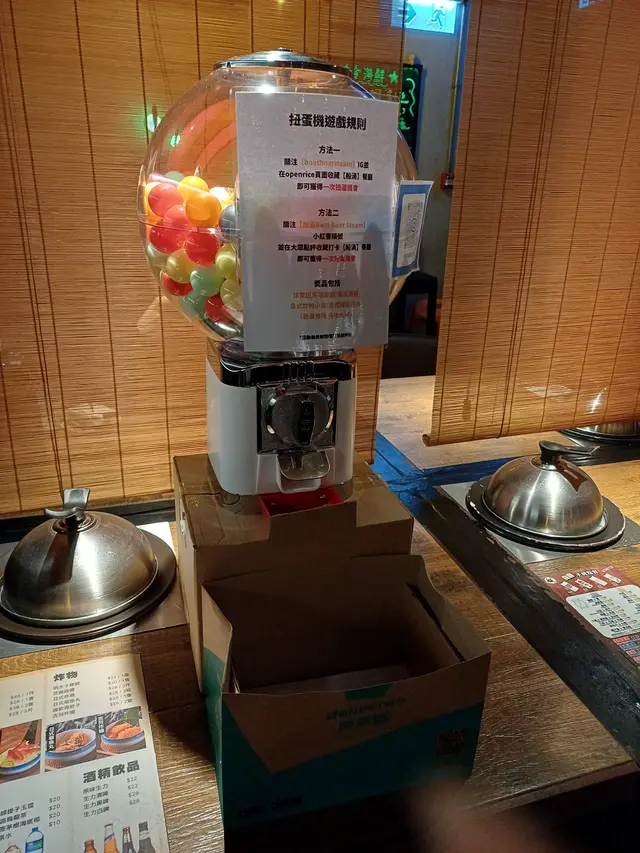 喝的餐廳有提供熱水,不過當晚可以抽獎,是必中獎的,有小食/喝的,我們抽中了汽水,正😝。