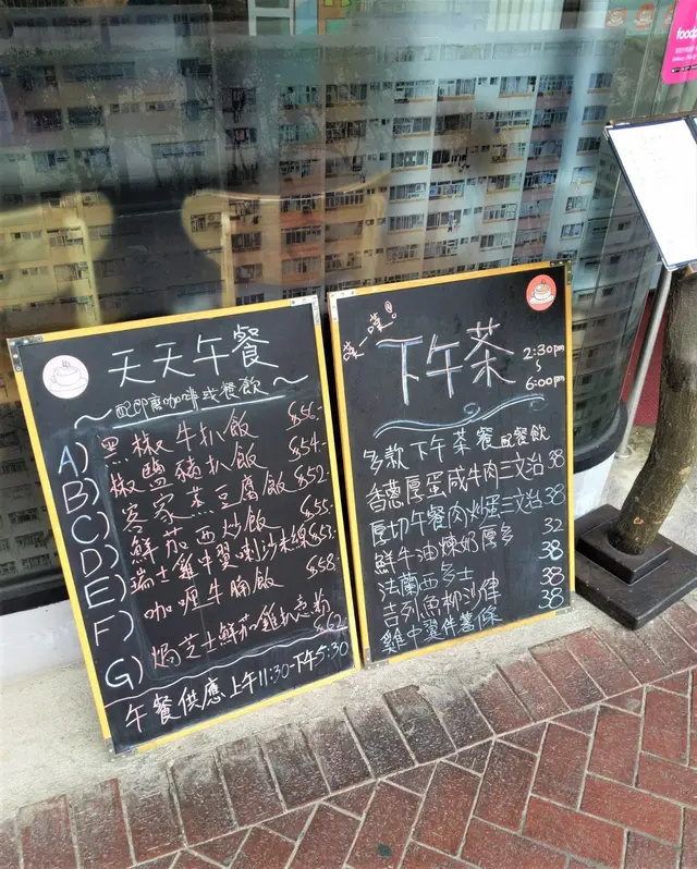 門口放了2個黑板,寫上了當日的天天午餐(11:30-17:30)和下午茶餐(14:30-18:00),看看價錢,下午茶不需HKD40,午餐則視乎菜式價錢由最平的蒸餸飯HKD52到最貴的焗意粉HKD62,以尖沙咀來說,Step覺得價錢合理…
