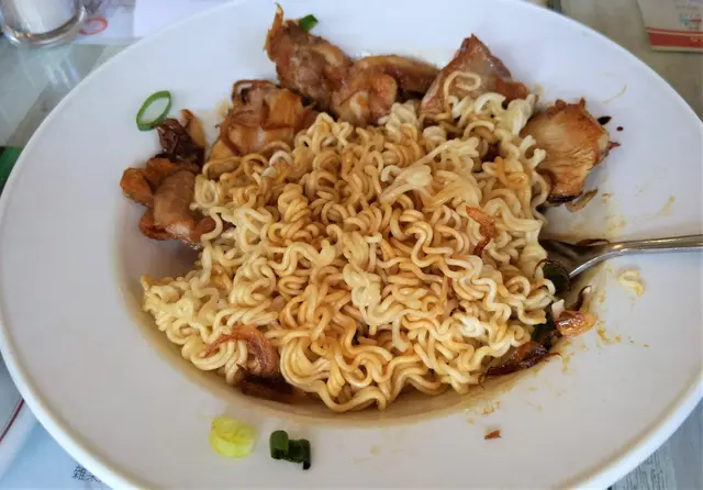 吃時要先將麵撈起撈勻,因為豉油汁在麵的下面,撈勻後麵色加了一點豉油色調;