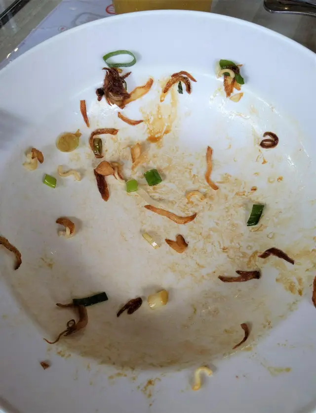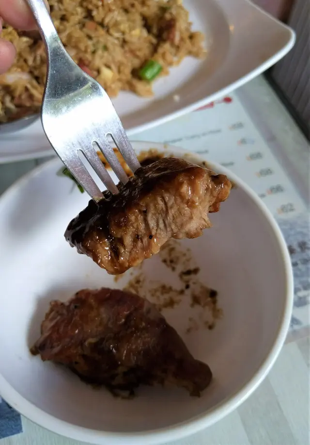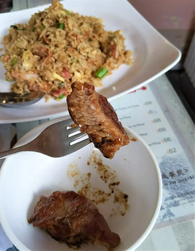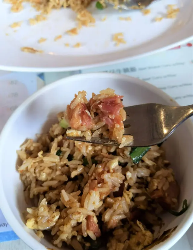 值得一讚的是飯粒顆粒分明,口感稍硬帶嚼勁,而且不算油膩,令平時不太好飯的娘子也吃到停不了口呢;很快這碟三餐炒飯吃得連一粒米飯也沒有,碟面同樣是油份不多,整明了師傅炒飯的功架十足,整體味道不俗,口感層次豐富;