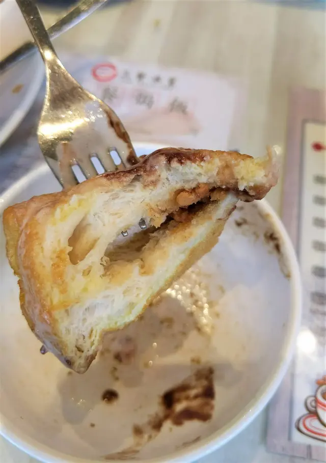 入口時,炸得香脆可口的外層和原本已經鬆軟的白麵包,加上花生味香濃花生醬,還有粒粒花生香脆口感,不蜜糖改以雲尼拿雪糕來代替,那種甜味適中,帶有點點香草味,反而沒有因此而蓋過白麵包與蛋醬的味道,感覺更為自然美味:還有冷暖冰火口感,可以說美味盡在不言中