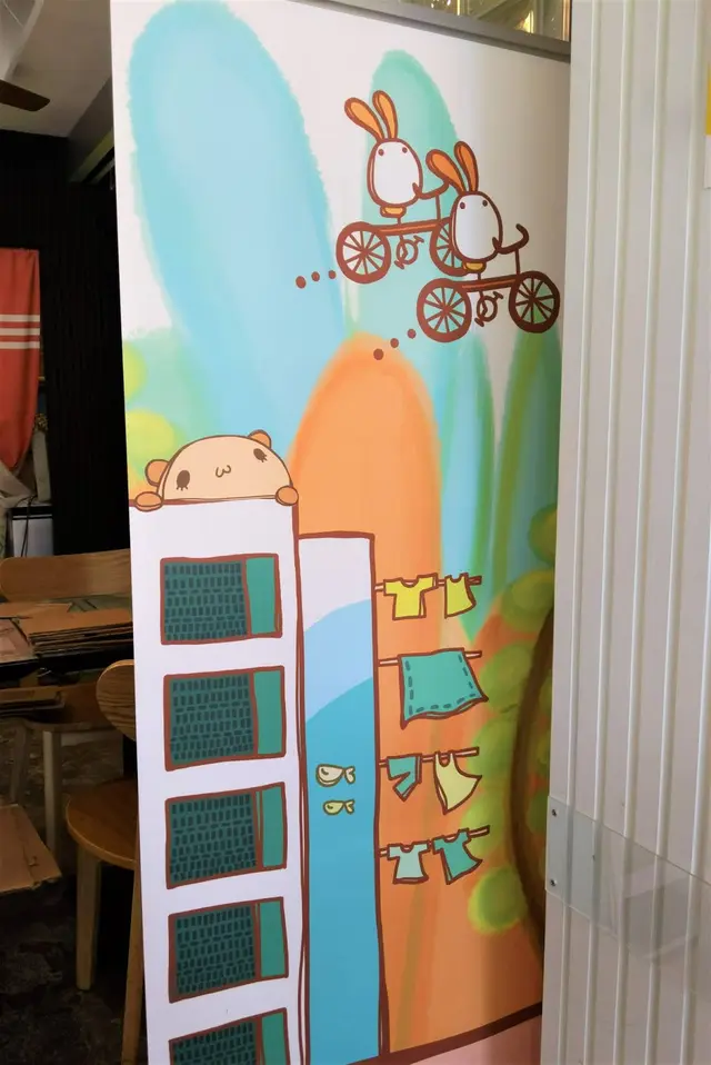 無論是餐牌、甚至是因疫情而加設的『易拉架』屏風也可以找到Q版公仔的踪影;