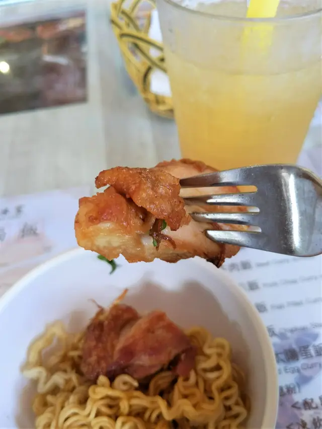 雞扒被煎得金黃香脆,外脆的雞扒看起來較為乾身,咀嚼時肉質同時保持一定的肉汁與嫩滑口感,加上香氣實在令人難以抗拒(令人著了魔似的),很快我們已經將雞扒全部吃完了…(但還剩下一些撈麵呢!!)