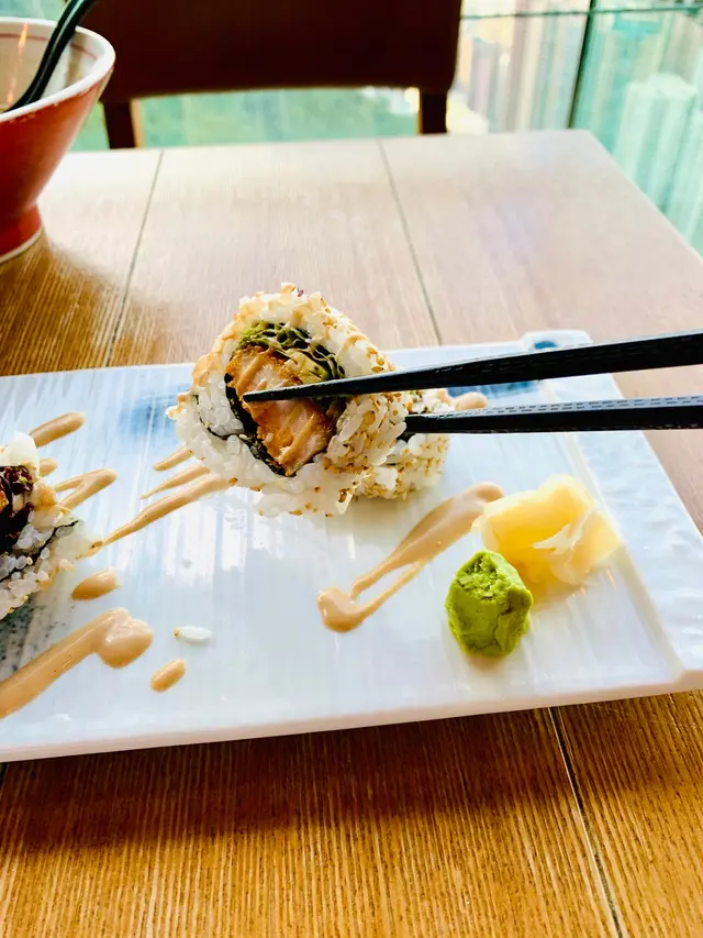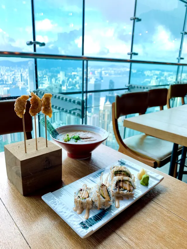 「Fujiyama Mama」就是位於山頂凌霄閣的日本餐廳,餐廳裝飾很特別,除了特色落地玻璃可以俯瞰整個維多利亞港景色外,也用了日本舊式唱片為主題佈置餐廳,好像置身於日本🇯🇵一樣,非常有格調。孖寶看到靚靚景色非常興奮,不停讓著要找出我們居住的地點😆。