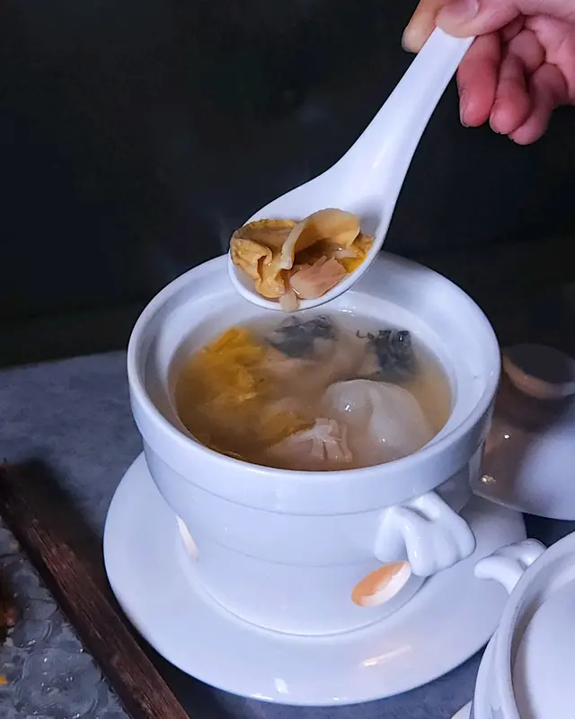 湯品《天子蘭花膠海螺竹絲雞湯》非常足料,湯頭鮮甜,雞味幾濃郁,上菜時用火保溫非常貼心。
