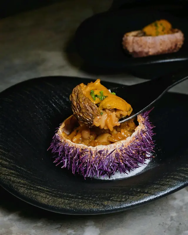 《松茸羊肚菌海膽飯》用海膽殼做器具,賣相好igable,濃滑海膽醬汁加上羊肚菌,令味道更有層次,nice!