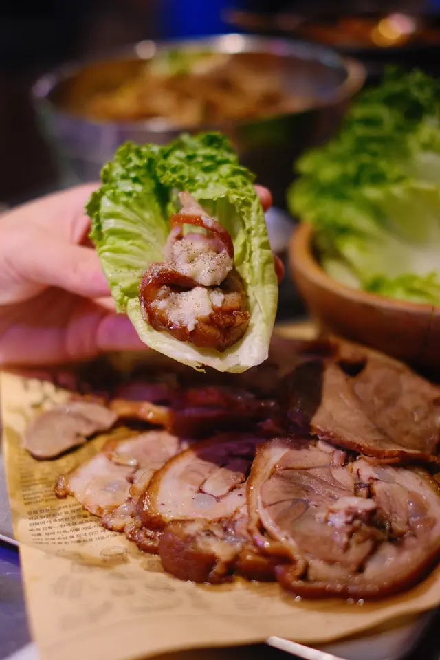 豬手滷得軟糯入味,用生菜包住加蒜片、醬料食,完全唔膩,膠質感滿滿