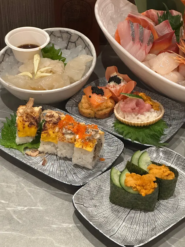 去返刺身壽司,依然保持一貫高質質素👍🏻新款海膽魚籽拖羅蓉中餅,啖啖鮮甜!鵝肝多士變咗鵝肝壽司,都唔錯😌
