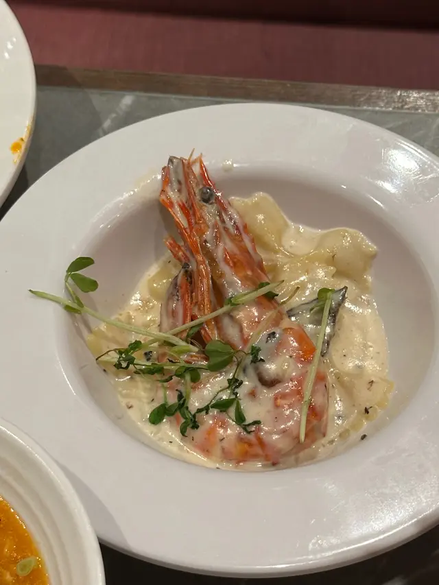 福岡芝心漢堡扒,中間流心好邪惡😝香煎虎蝦拌黑松露忌廉汁,濃郁醬汁加埋彈牙虎蝦好味🤤