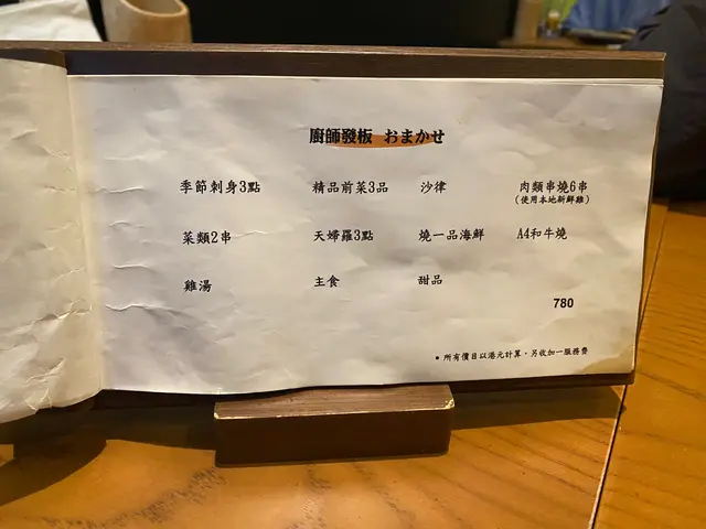 $780/人 +1服務費包以下食物