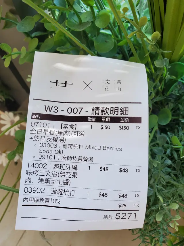 點了全日早餐(無肉)$108,
