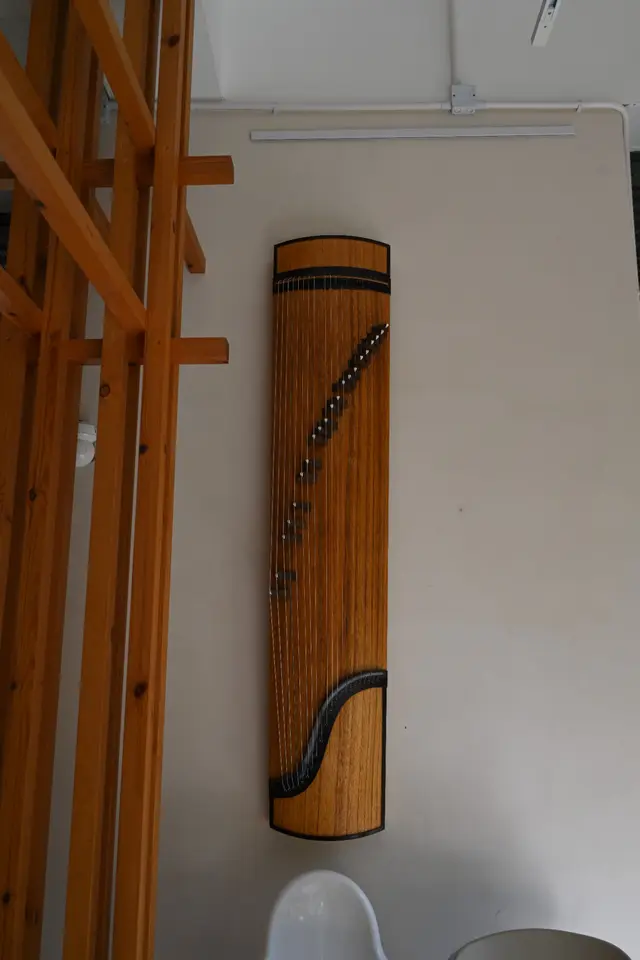 位於高山劇場新翼一樓,環境清幽,室內設計簡約,牆上掛著古箏裝飾,
