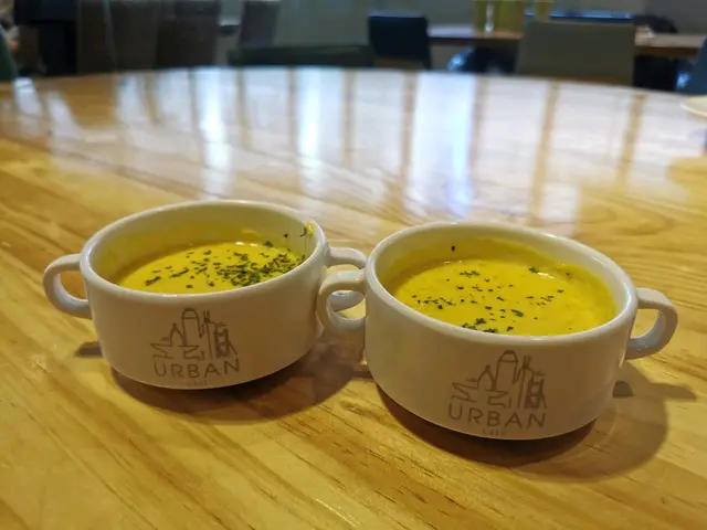 首先嚟嘅係雜菜沙律同埋南瓜忌廉湯