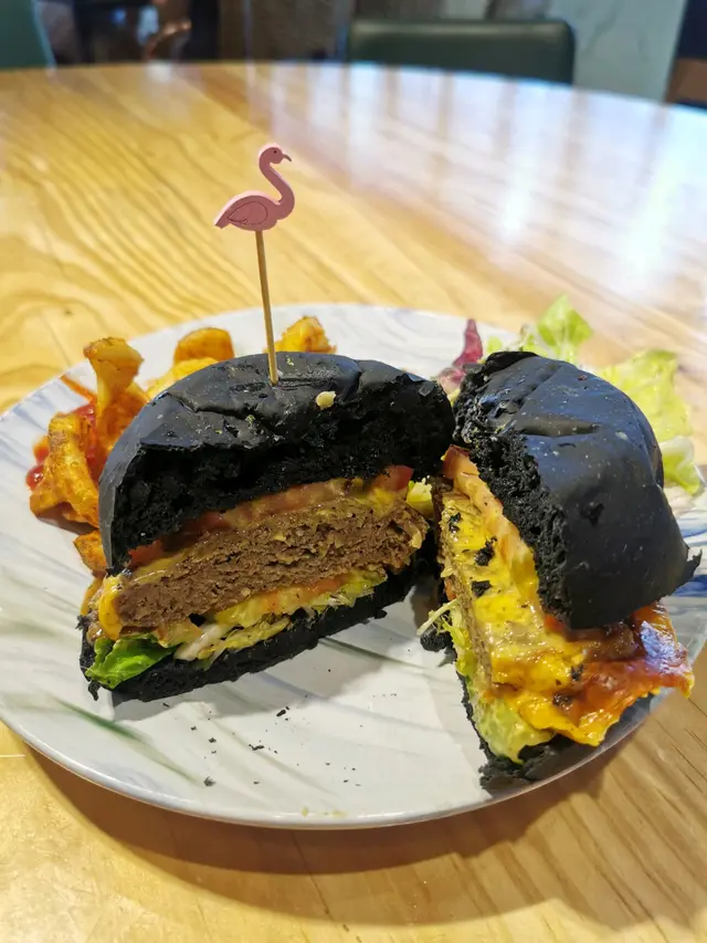 另一個主菜就係呢個安格斯竹炭漢堡,一送到埋黎已經覺得好吸晴,好少見黑色既竹炭漢堡,原來食落都唔錯架,而漢堡入面好足料,厚厚既安格斯牛肉, 配埋芝士蕃茄同埋黑松露燒汁,真係無得頂,真心強烈推介