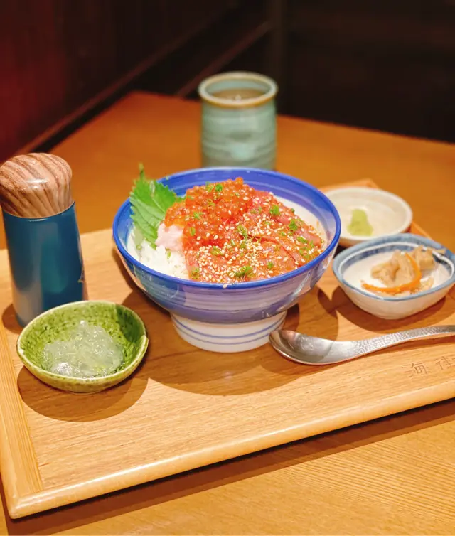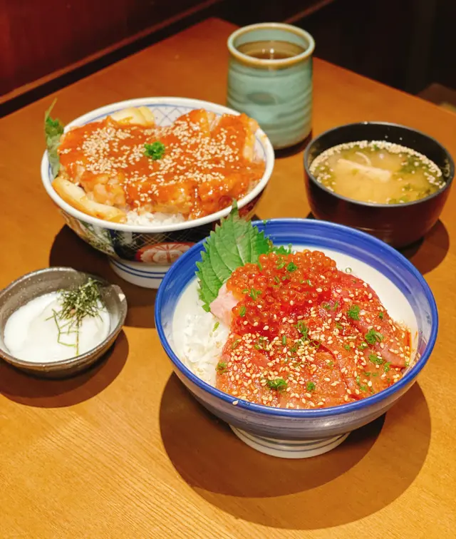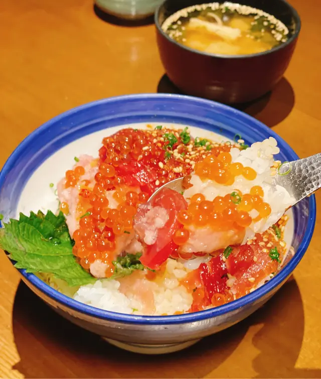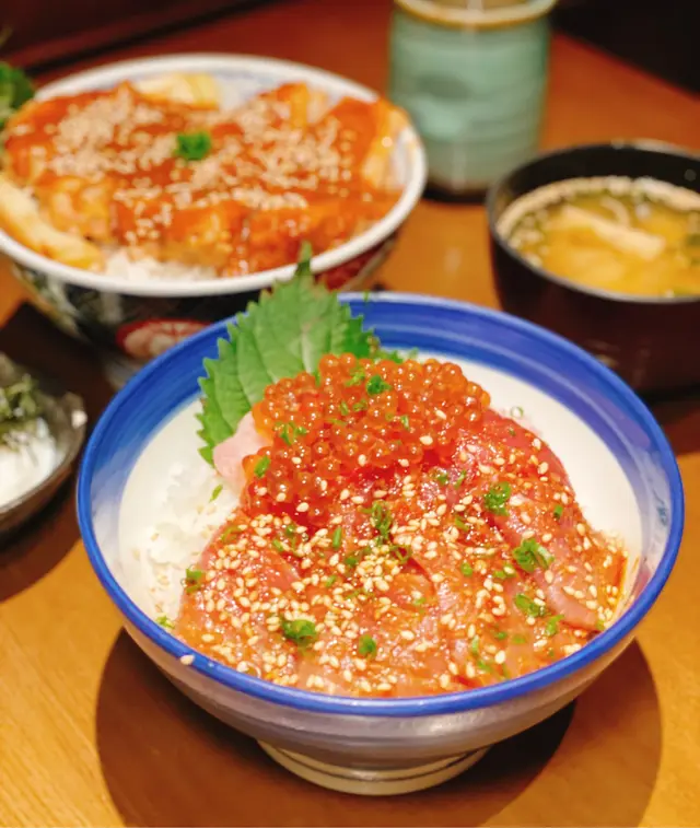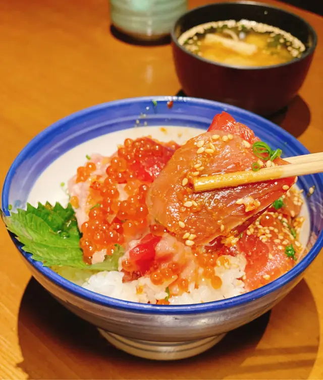 吞拿魚丼外相好豐富,大量嘅魚籽,每嚿吞拿魚都好肥美,油脂分佈都超平均,而且套餐可以有兩種食法,店員提示可以加魚湯變成漬飯食法,魚湯非常鮮甜,好特別嘅食法😍