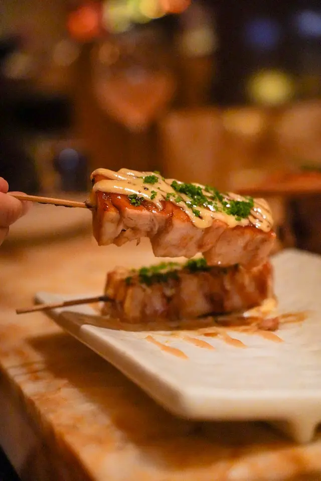 令人驚喜的五花串腩~ 豬肉用20小時慢煮而成,肥肉肥而不膩,瘦肉鬆軟不乾,整體口感豐富有層次,十分Juicy。配合蜜糖&柚子醬,微微酸甜中和油脂感。