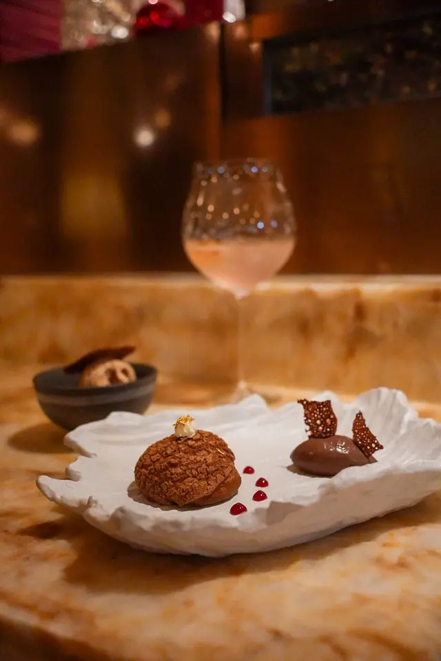 脆的朱古力泡芙酥,配上香濃的朱古力Mousse,為美好的晚上作結。