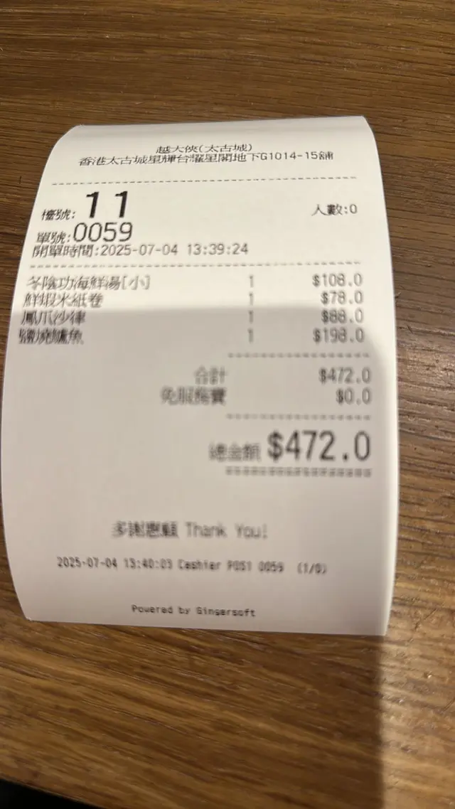 「越大俠」幾啱收工想食啲濃味又唔太heavy嘅朋友。環境企理坐得舒服,食物大份兼有鑊氣🔥,尤其條鹽燒魚真係有料到!價錢合理,兩個人都食到捧住個肚走,係傾計醫肚嘅穩陣選擇👌。