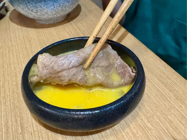兩者各具風味,肩胛部位肉質較為油膩,脂肪分布均勻,口感柔軟,特別適合與壽喜燒汁搭配,增添了甜味。赤身肉質脂肪含量較低,一定要點蛋漿食,肉味天濃又嫩滑