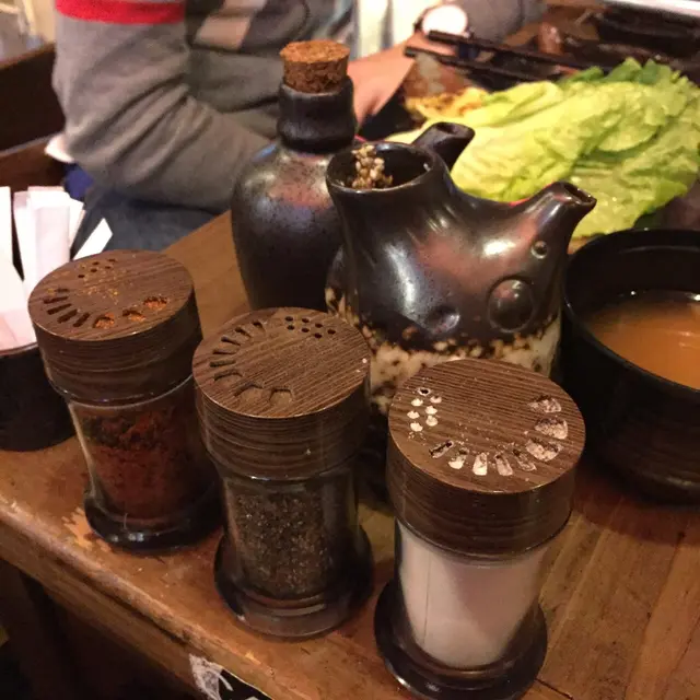 ,的的骰骰的一口牛,肉質不會太乾柴,一口一件剛好,每件也不會太膩口,沾上日式燒汁也可,在旁的調味粉也頗多選擇,七味粉,黑椒等等