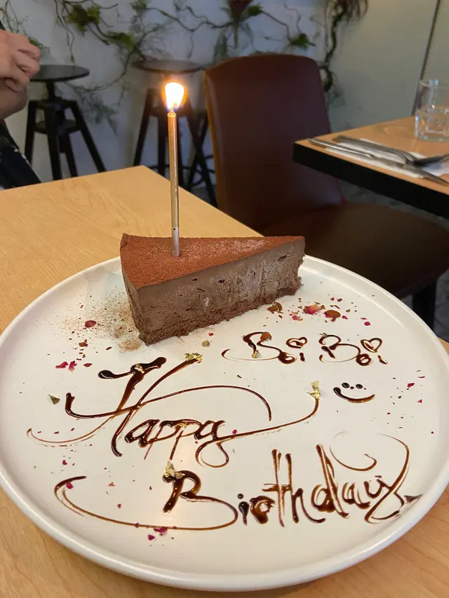 👍🏻:廚師寫嘅Happy birthday字體超級靚😚😚朱古力味道超濃郁🍫又唔會過甜,而且慕絲蛋糕比海棉蛋糕好食好多😋😍會有少少軟心嘅口感
