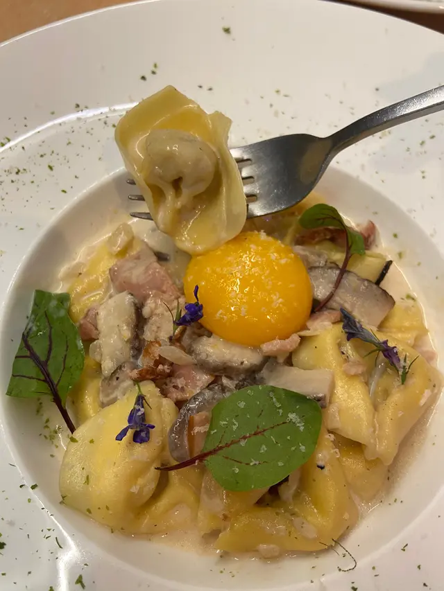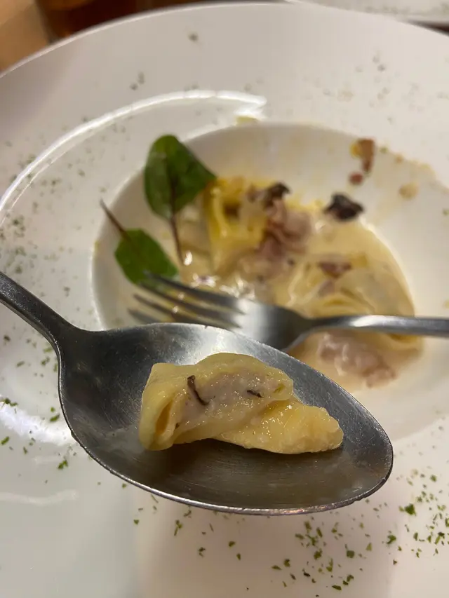 👍🏻:比較特別嘅菜式,其他普遍都會係卡邦尼意粉🍝今次餐廳就用咗意大利雲吞🥳幾特別嘅感覺,雲吞入面有啲芝士餡料,不過我覺得可以再多啲餡料🤣加埋煙肉🥓同卡邦尼汁好好食🤤
