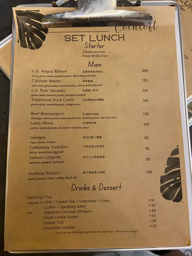 以下係lunch set價錢:包一個湯🍲麵包🍞同埋餐飲🍹