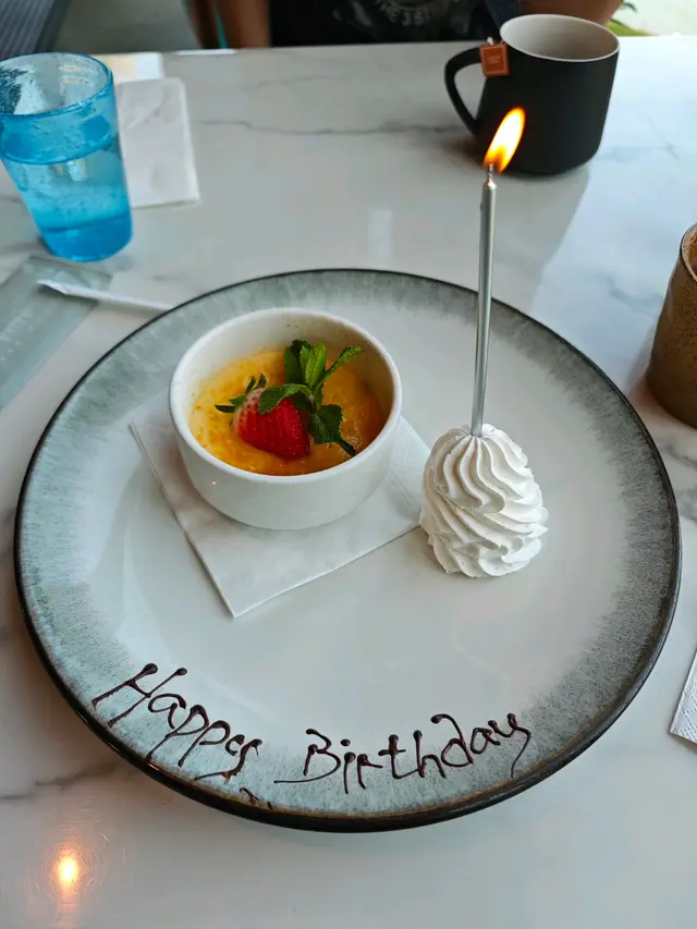 2024生日飯二 miko_12323等級42025-04-036K 瀏覽 關注 呢間都係我生日前揀好嘅餐廳,訂咗生日正日嚟食午餐,餐廳座位都闊落,窗外嘅景真係幾靚,環境清幽,湖水同草木都打理得好乾淨。我哋每人點咗一款午餐,食物個樣幾精緻,不過味道冇咩驚喜,不過職員有禮,簡單嘅生日飯,影下相都唔錯。6窗外環境好靚,餐廳裏面嘅電視機播住喺外面電視仲可以舉行婚禮嘅宣傳片段。1241蕃茄忌廉湯,多啲忌廉會好啲。美國牛肉湯,豆芽菜。炸蟹肉丸子,鮮無花果南瓜配馬蘇裡拉芝士意大利飯,淡咗啲。慢煮加拿大豬排,醃椰菜沙律,豬係幾淋幾好味。龍眼茶熱朱古力法式焦糖燉蛋,生日可以寫祝賀語,燉蛋最好味。以上食評乃用戶個人意見 , 並不代表OpenRice之觀點。讚好分享2024生日飯二 Billow https://s.openrice.com/QrbT0cKHR00檢舉 張貼 評分3味道5環境4服務5衛生4抵食用餐日期2024-12-12用餐途徑堂食人均消費$371 (午餐)慶祝紀念生日