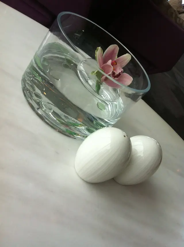 桌面上晶瑩的玻璃瓶中,擱一朵淡紫惠蘭,浪漫總在不經意間。矮桌進餐有點風險,不是太多人喜歡,但卻揚溢慵懶寫意,與星期天的中午是絕配。