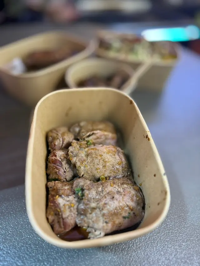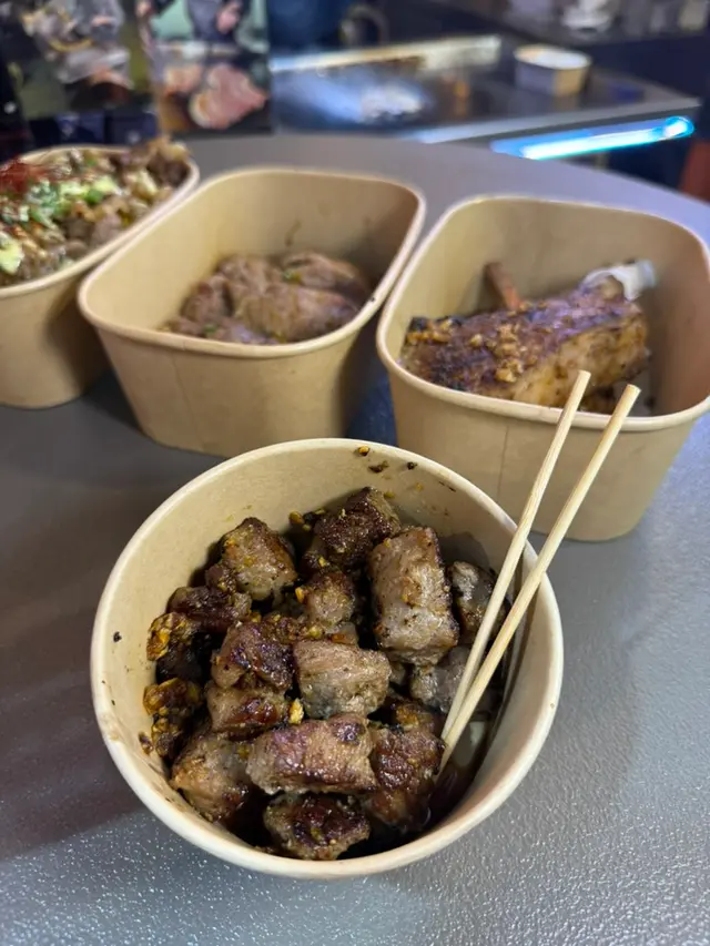 首先推介嘅係鐵板一口和牛粒,和牛粒肥瘦適中,唔會話一啖咬落去成粒都係肥膏